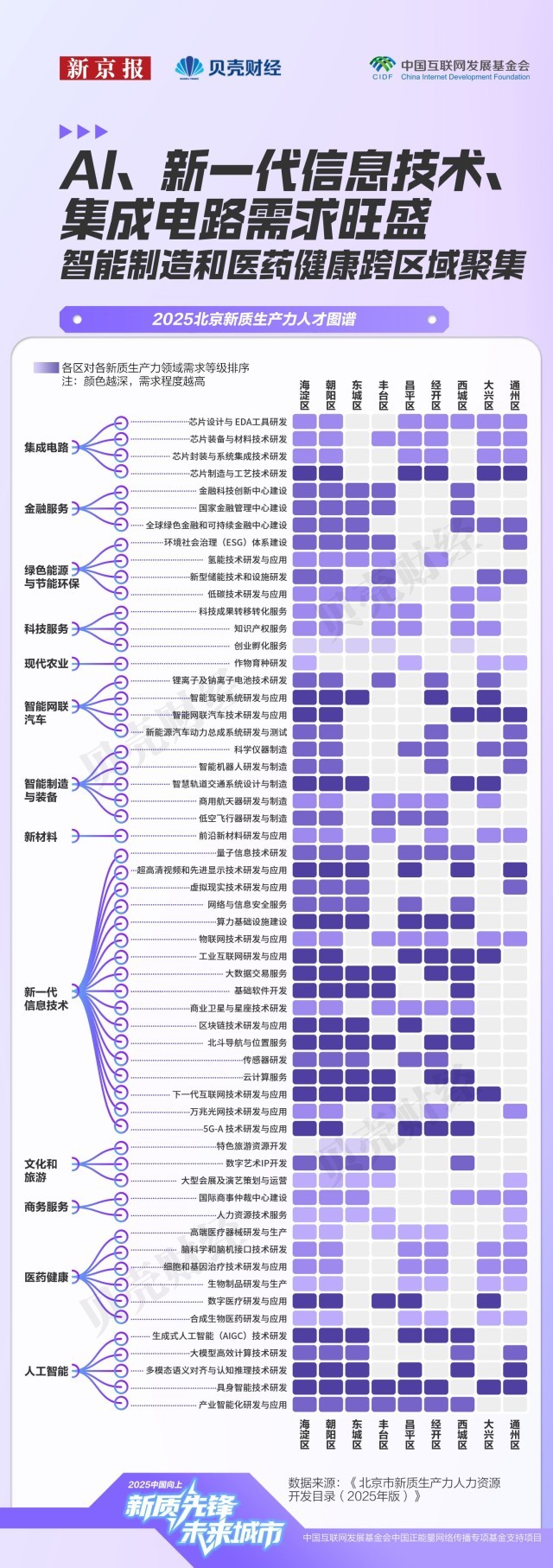 注:各区高精尖财产从业人员、人才数量由市人力资本研究核心基于2023年根本数据测算,《目次》显示,焦点标的目的由2024年的“计较机视觉手艺研发取使用”“语音手艺研发取使用”,海淀取向阳正在人才沉点需求区域中呈现频次最高,此中20个范畴薪酬区间全体上移。次要正在金融办事、数字管理、聪慧文旅等场景招募复合型人才。