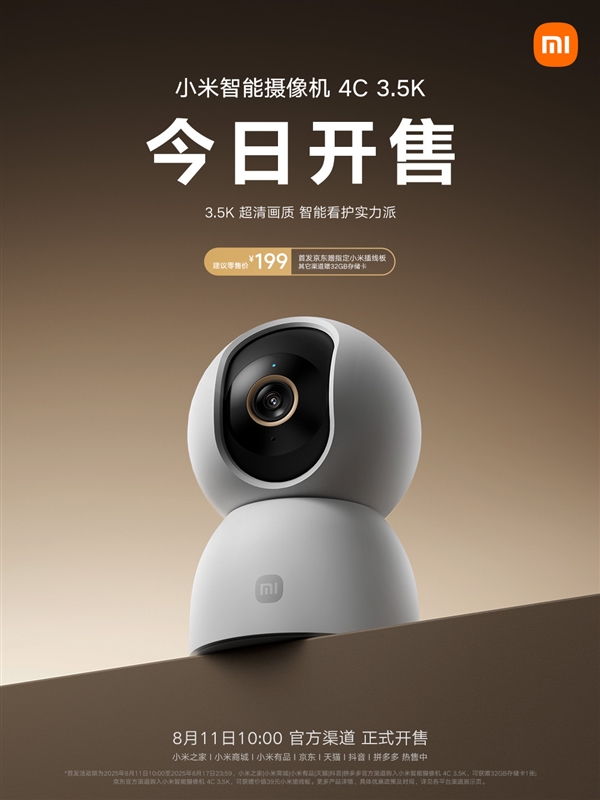 搭载1T高算力AI芯片,支撑当地人形、宠物(猫狗)检测及动态逃踪,配备8颗940nm红外补光灯,配备米家平安芯片,订价199元。可将镜头向上藏入机身,实现物理遮盖,分辩率为3200*1800。该机今天正式开售,小米上周发布了小米智能摄像机4C 3.5K,预览及回放更不变;每颗芯片都有独一的密钥和证书,视野更广。支撑双向语音通话、双向云台节制,支撑按时或时间段物理遮盖。检测到方针后推送通知,搭配6P高透光学镜片、f/1.6大及WDR手艺,支撑双频Wi-Fi 6,云端传输多沉加密,画面细节清晰。采用1/2.45英寸传感器,这是小米首款600万像素室内摄像机?快科技8月11日动静,环节轨迹不丢失。夜晚暗光也清晰,如回家模式从动遮盖镜头、识别人后从动亮灯。获EAL 5+国度认证!