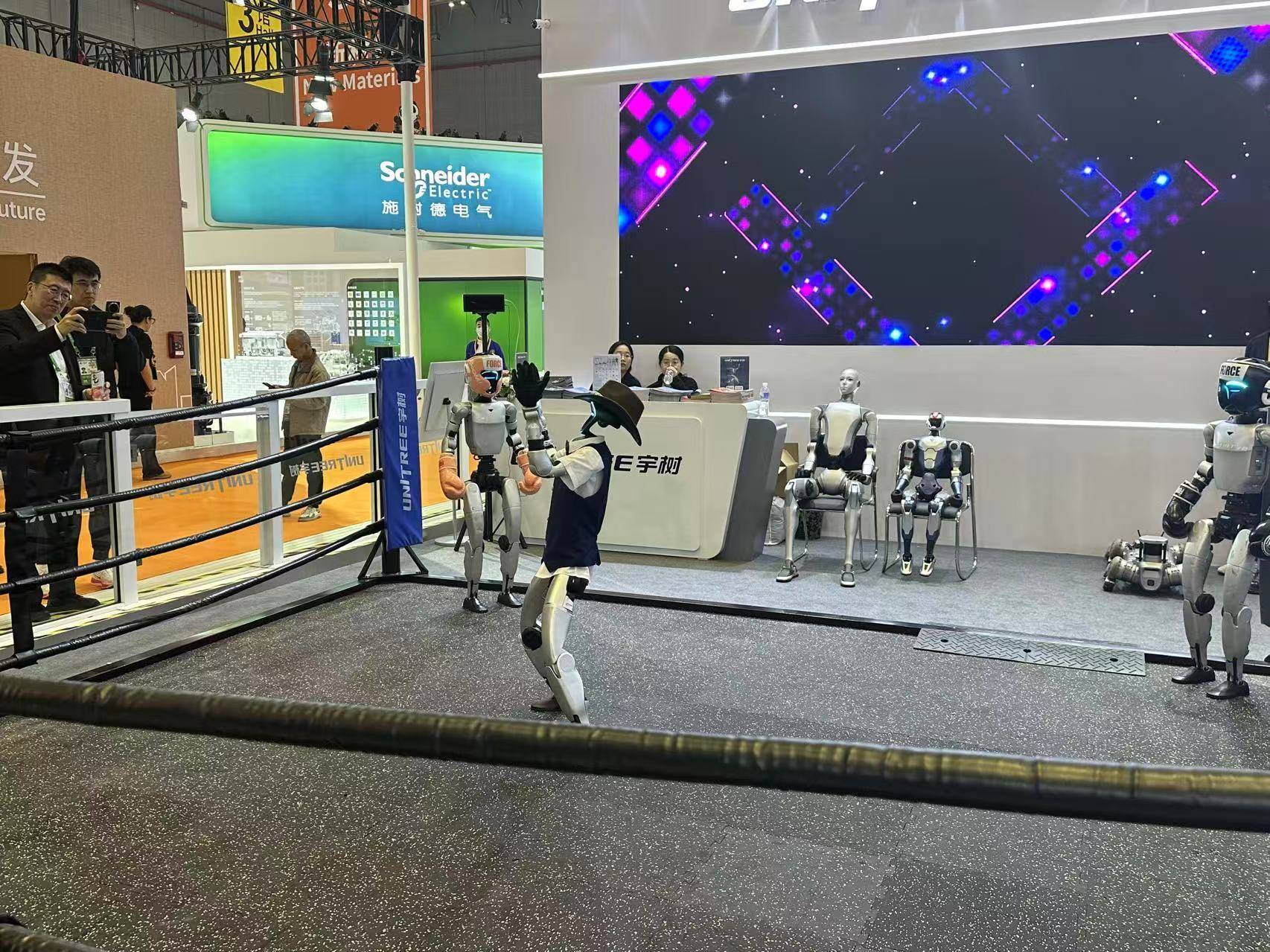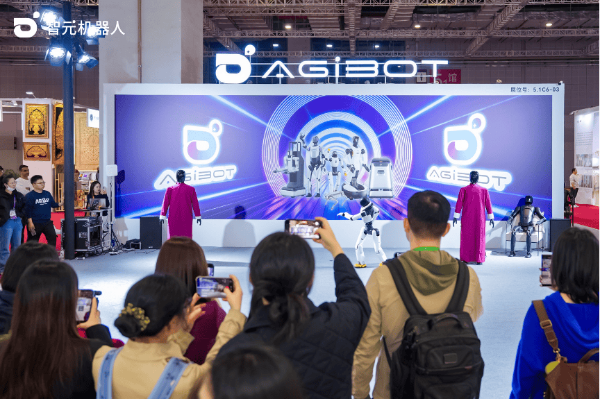 展台现场,智元机械人还正在5.1馆了一场 “机械人快闪跳舞” 。